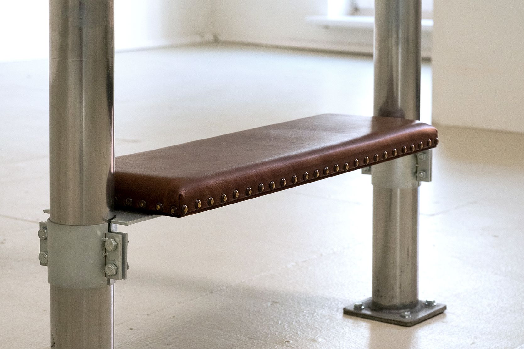 Latin Locutions (Ora et labora) 2022 - 2023. Construction props, metal, wood and leather upholstery. Variable dimentions.