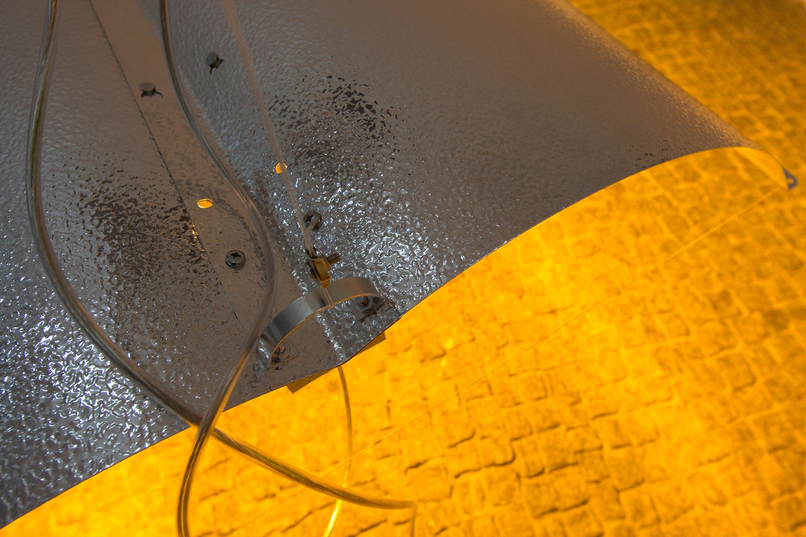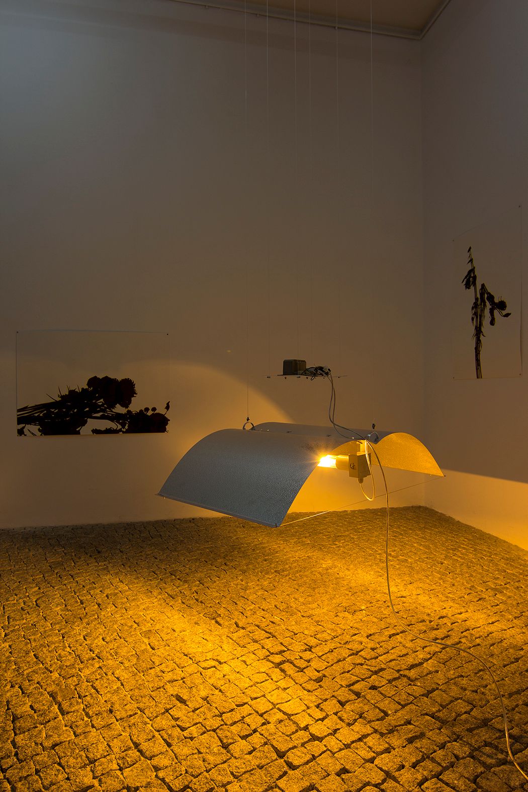 Selbstblühend (Autoflowering) 2021. Sodium light, reflector, heat and smell of burning. 100 x 100 x 70cm