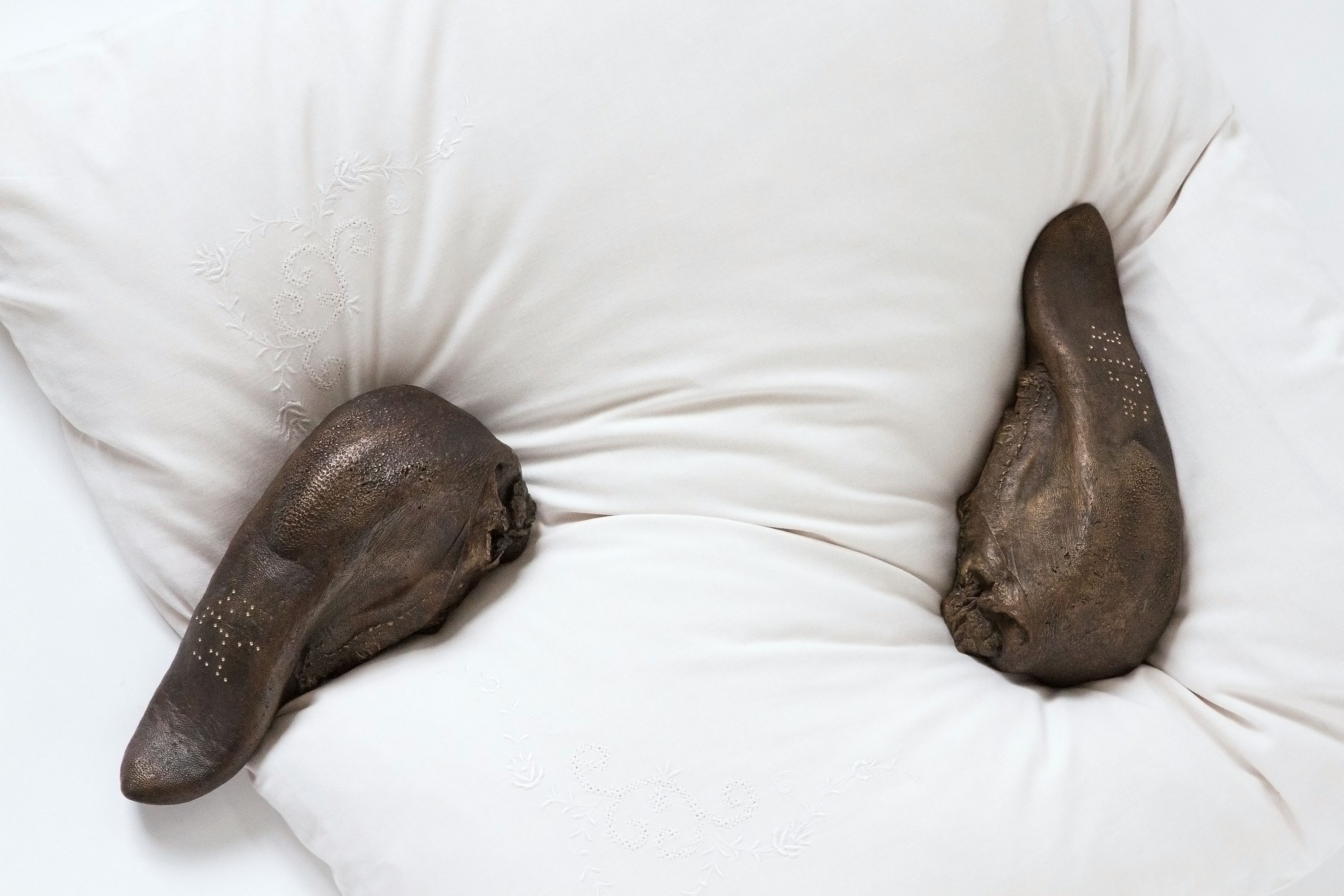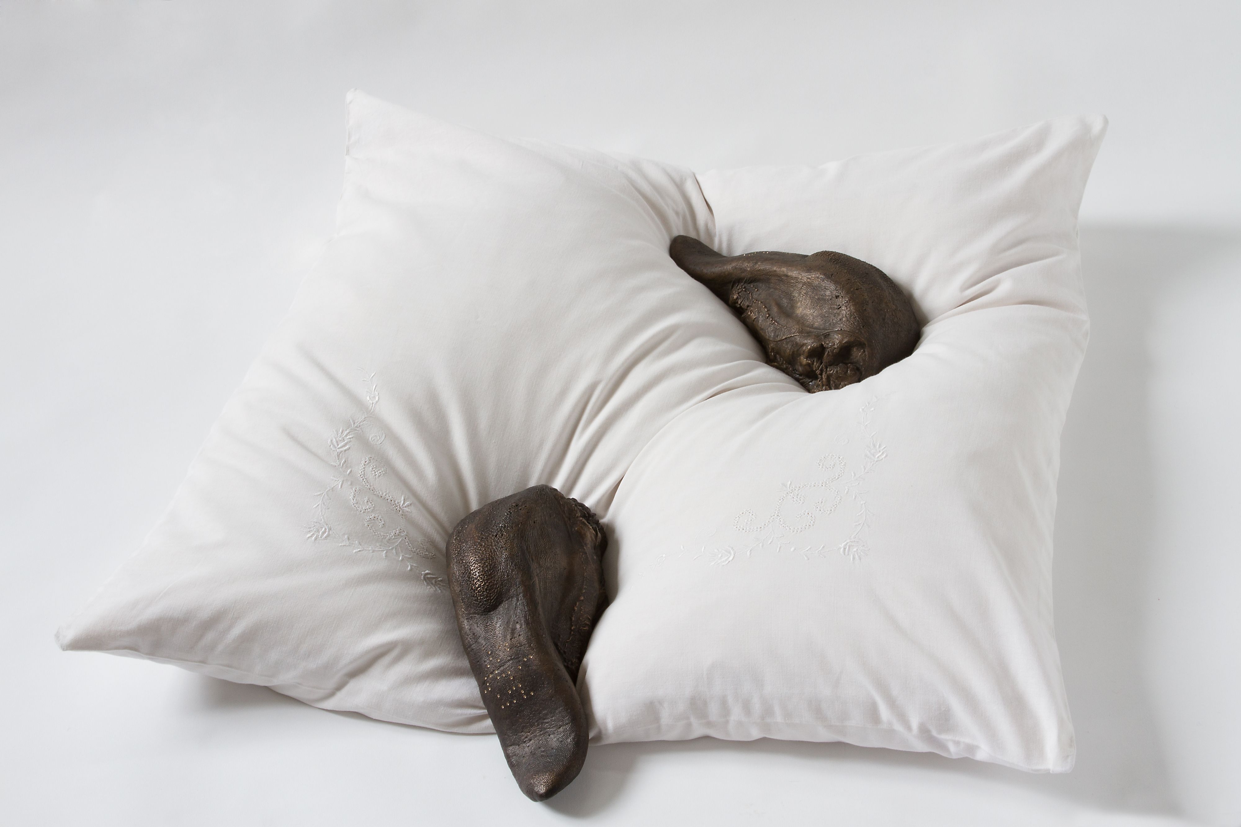 You still don’t speak to me, and that’s the best I’ve been able to do 2017. Cast broze cow tongues and pillow. 14 x 60 x 65 cm.